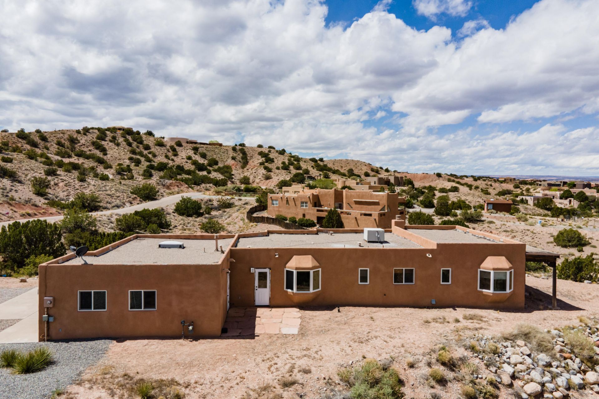 Charming Placitas home with unforgettable views! Situated on 1.09 acres, this 3-bedroom, 1.75-bath home offers 1,584 sq ft of authentic Southwest character, including stained concrete floors, wood-beamed ceilings, nichos, and a cozy kiva fireplace. The functional kitchen features a gas range, built in oven, granite counter tops, and bar. The open layout provides a great foundation to make it your own. Step outside and take in sweeping views of the Jemez Mountains--perfect for relaxing or entertaining. A rare oversized 3-car garage offers ample space for vehicles, storage, or hobbies. Don't miss this opportunity to own in desirable Placitas and create your dream home!